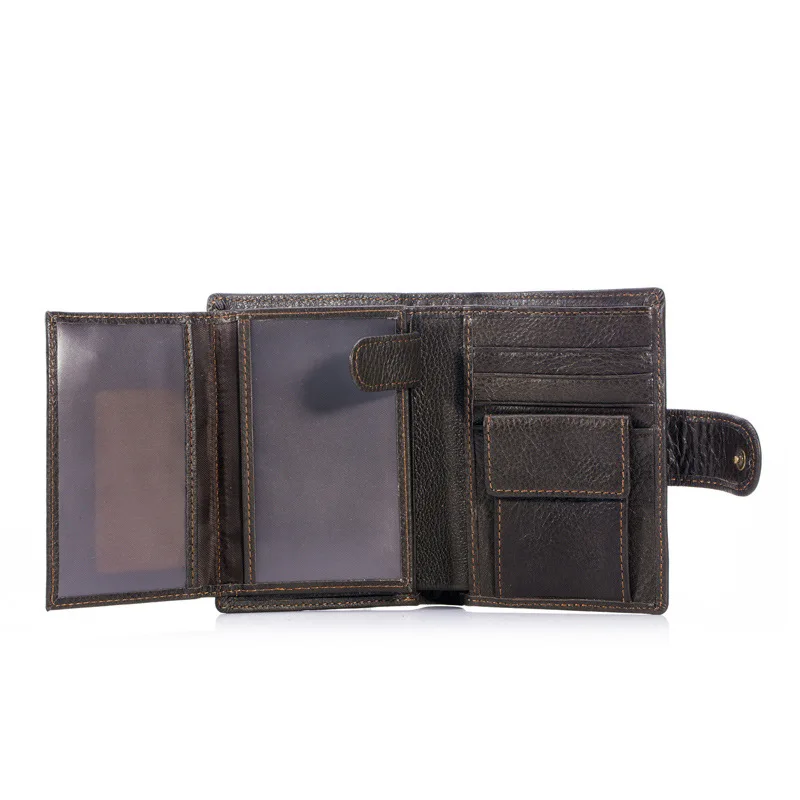 Мужской кожаный бумажник BULLCAPTAIN, коричневый бумажник с застежкой для отдыха, тонкий ID держатель для карт, двойной кошелек, сумки для денег, кошелек из воловьей кожи, 2019