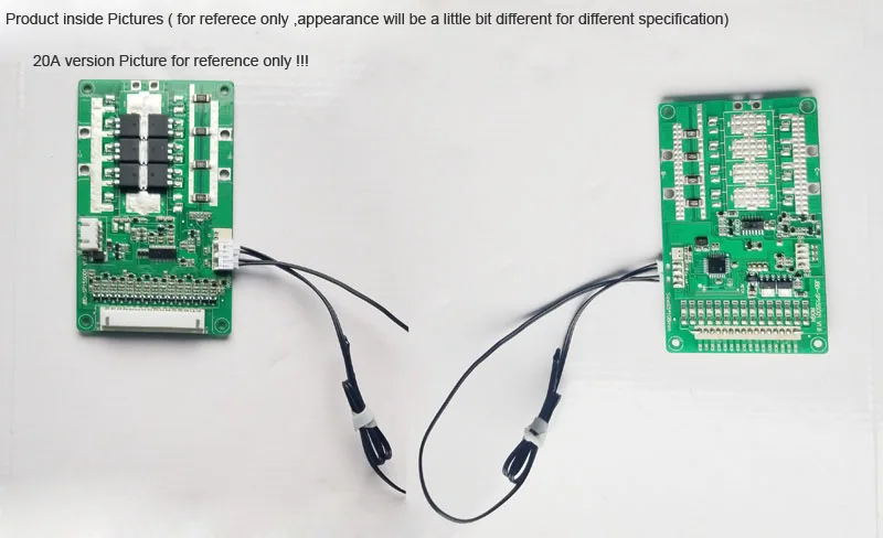 Уведомление о подключении: А. Во-первых, подключите смелые провода от b-порта BMS к отрицательному порту аккумуляторной батареи. (B-провод должен быть как можно короче), затем подключите эти провода обнаружения напряжения (пожалуйста, снимите эти провода от BMS перед подключением этих проводов к батарее, чтобы избежать каких-либо ошибок подключения) B. Во-вторых, пожалуйста, начните подключать эти провода баланса к системе батареи от BC0, черный тонкий провод должен быть подключен к батарее отрицательный, И второй провод-белый провод BC1 должен быть подключен к положительному порту первой ячейки серии. BC2 должен подключаться к положительному порту ячейки второй серии, а BC3-к положительному кабелю третьей ячейки.... Таким образом, можно заказать один за другим до последнего порта ячейки C. В-третьих. После завершения соединения этих балансовых проводов Измерьте напряжение соединителя от каждого соседнего провода, напряжение между каждым соседних проводов для литий-ионный аккумулятор должно быть меньше, чем 4V и для Lifepo4 батареи должно быть меньше, чем 3,5 V, после подтверждения эти провода соединения заказа, вы можете подключить кабельный разъем к BMS. -Неправильный заказ на подключение, безусловно, повредит наши BMS. Пожалуйста, будьте внимательны с этим шагом. D. Наконец, подключите c-провод как отрицательный заряд и разрядку, B + провод как положительный заряд и разрядку, эти провода должны Используйте смелый провод для подключения к большому току. Затем, пожалуйста, сравните напряжение от BMS и напряжение непосредственно от батареи, чтобы увидеть, являются ли они одинаковыми или нет. Если они одинаковые. Ваше соединение верное, иначе будут происходить ужасные вещи!