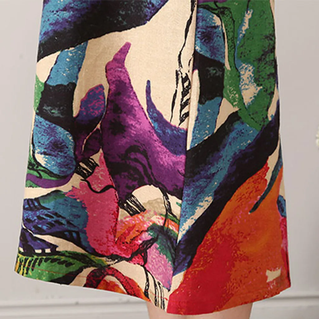 Женское Свободное платье с круглым вырезом и коротким рукавом из хлопка и льна; Большие размеры