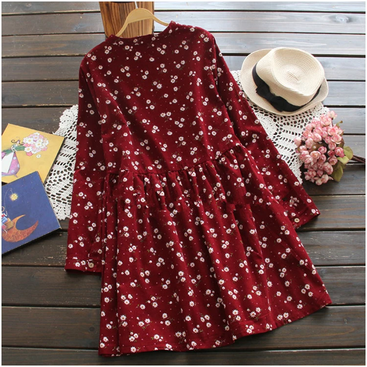 Женское винтажное платье с цветочным принтом Mori Girls, повседневное хлопковое короткое платье с длинным рукавом, модель RQ391 большого размера на осень и весну, 2019