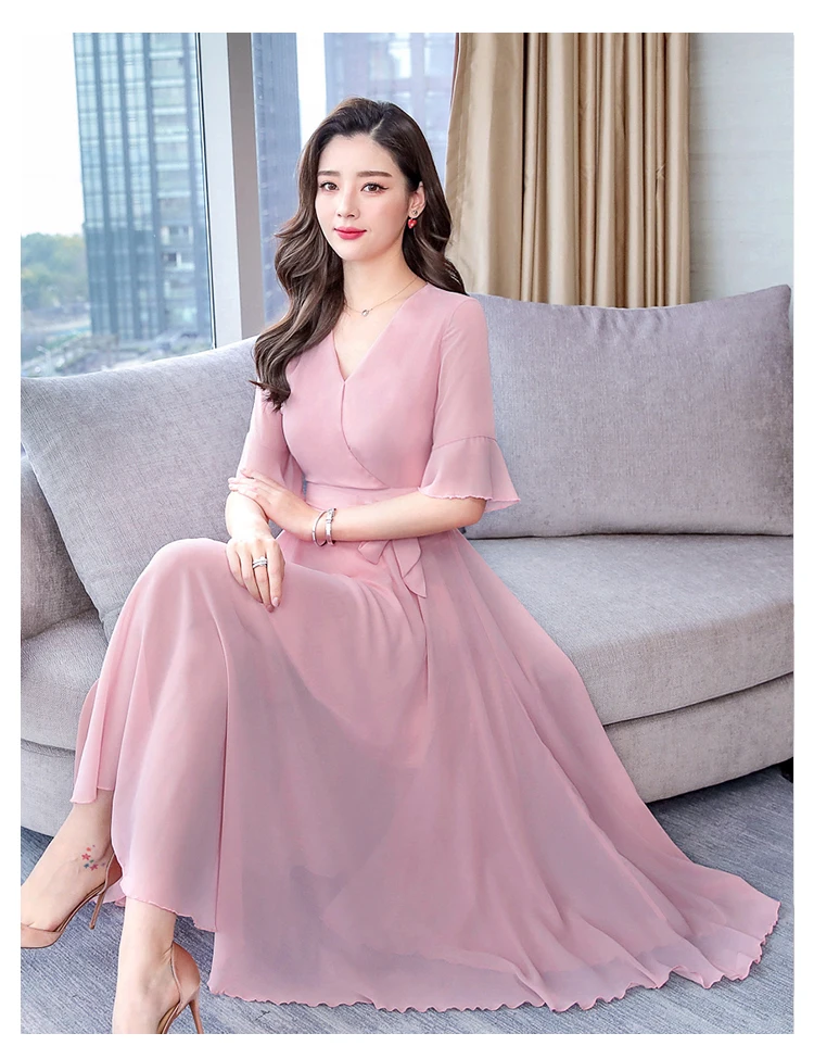 Шифоновое летнее платье для женщин 2019, сексуальные длинные вечерние платья с коротким рукавом, большие размеры, тонкие пляжные макси платья DV459