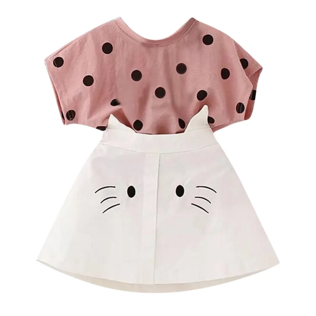 Одежда для маленьких девочек футболка в горошек + юбка с вышивкой в виде кота