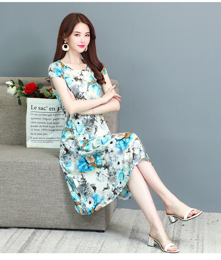 Женское платье с коротким рукавом, свободное хлопковое платье большого размера 5XL, модель DV461 на лето, 2019