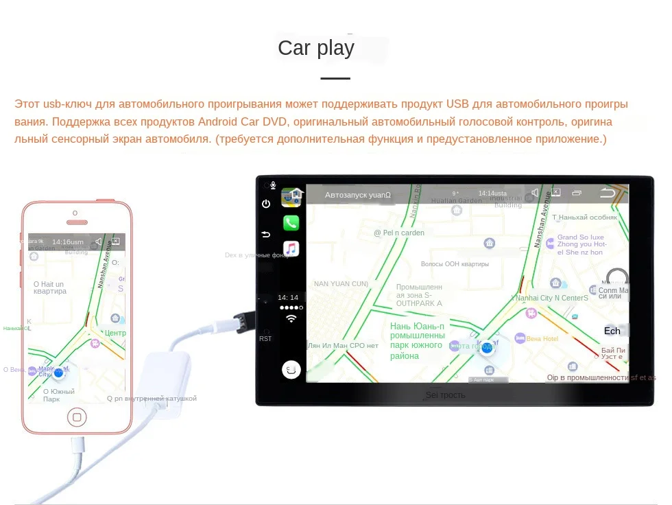 - USB ключ Carplay:Совместим с мобильным телефоном IOS и Android, этот usb-ключ Carplay подключен и работает. Он поддерживает Оригинальное Голосовое управление автомобиля и сенсорный экран. Благодаря ему вы можете свободно наслаждаться функцией carplay вашего смартфона в вашем автомобиле.