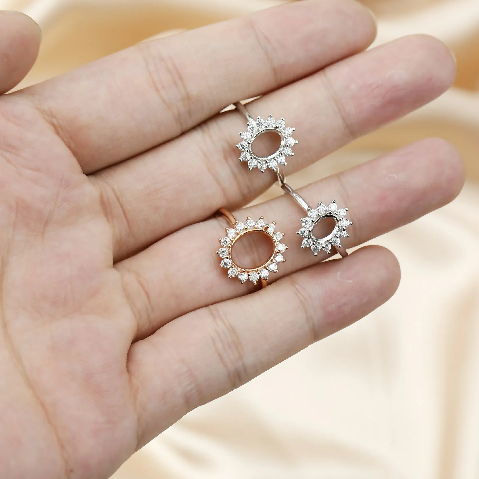 rose gold silver oval Gems CZ stone prong setting solid 925 sterling silver bezel tray DIY adjustable ring setting 1224004