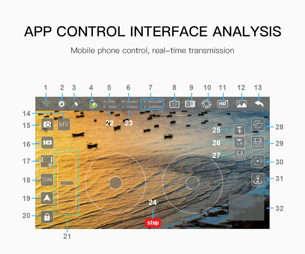 -GPS умный: 1. После того, как самолет свяжется с GPS, он открывает следующую функцию приложения, и самолет следует за мобильный телефон. 2. Следующее изображение: распознает объект съемки и автоматически Следуйте за полетом.