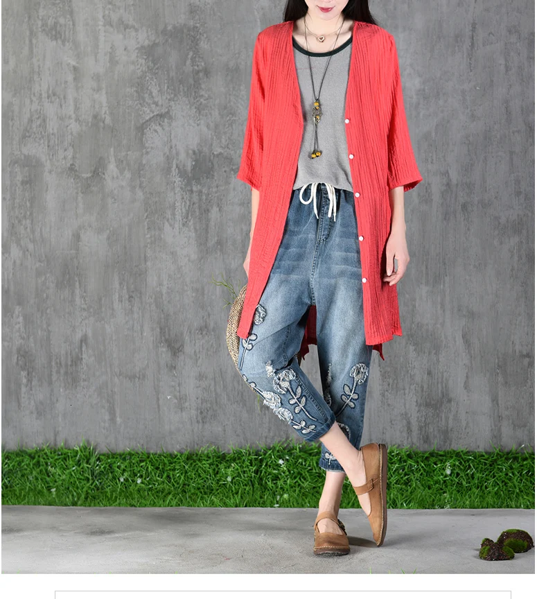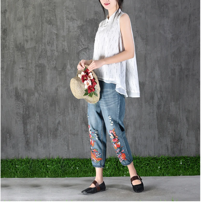 Летние джинсы-шаровары Капри женские винтажные джинсовые брюки до середины икры с вышивкой Женские джинсы с эластичной резинкой на талии джинсы размера плюс для женщин