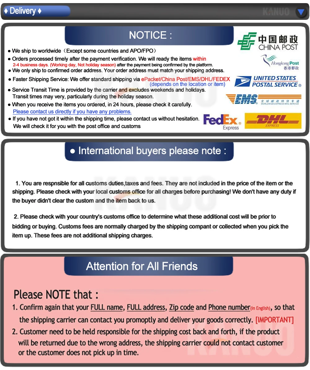 О нас: ● Kanuo была основана в 1999 году, которая расположена в Шаньтоу, Гуандун, Китай. Мы являемся оптовым продавцом всех видов использованных оригинальных мини-машин Noritsu & Fuji, а также производителем сопутствующих запасных частей Minilab. Наша компания также может предложить техническую поддержку и оборудование для тестирования, установки и ремонта. Основная продукция: ● Оригинальный и совершенно новый лазерный пистолет Shimazu, лазерный блок, AOM, бумажный журнал, чернильная лента, фильтры, комбинированная лента, нагреватель, шестерня, поперечная стойка, направляющая, ролики, накладка клавиатуры, ремни, лампы, циркуляционные насосы, пополняющие насосы, отрицательные маски, пружины, оболочка, сопло, лазерные Отражающие зеркала, печатные платы, химические, Коробка для чернил, бумага и так далее. Также предлагаем услуги по ремонту лазерного пистолета, AOM и PCB, приглашаем Вас связаться с нами.