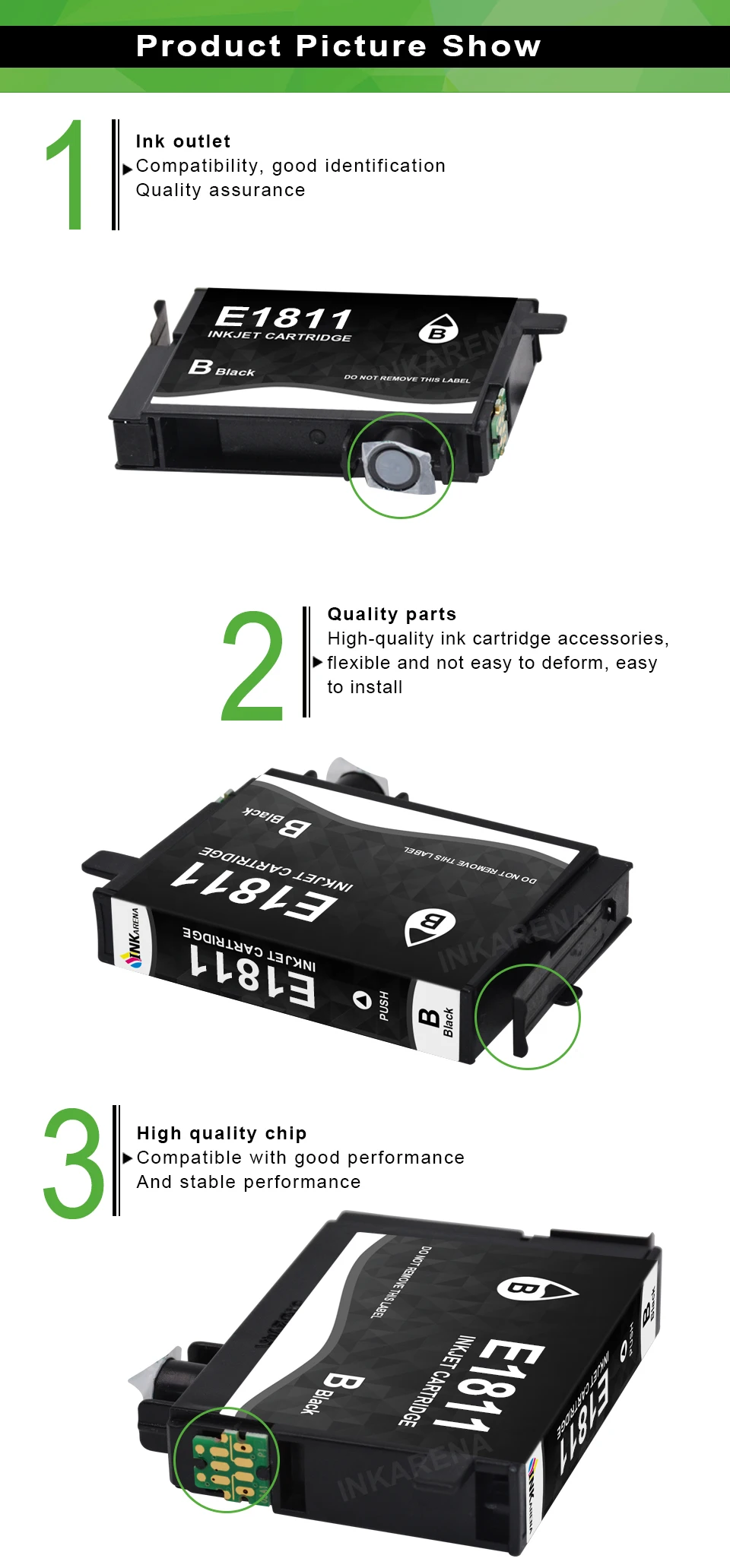 3 шт. X T1811 чернильный картридж черного цвета, полный с чернилами с чипом