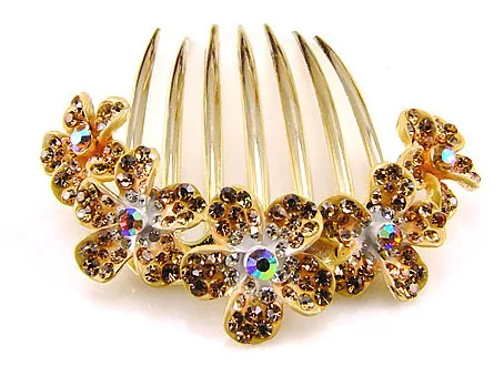 Женский гребень для волос TREAZY золотистый с жемчужинами и кристаллами свадебные