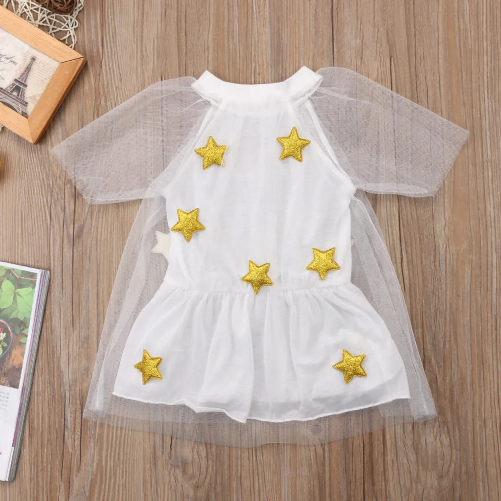Toddler Kids Baby Girls Short Sleeve Princess Stars Party Tulle Dress Clothes