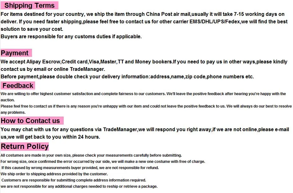 Примечание:Если нет подходящего размера, пожалуйста, напишите нам пол, рост, вес, грудь, талию, бедра, ширину плеч (от плеча до плеча), длину руки и внутренний шов.