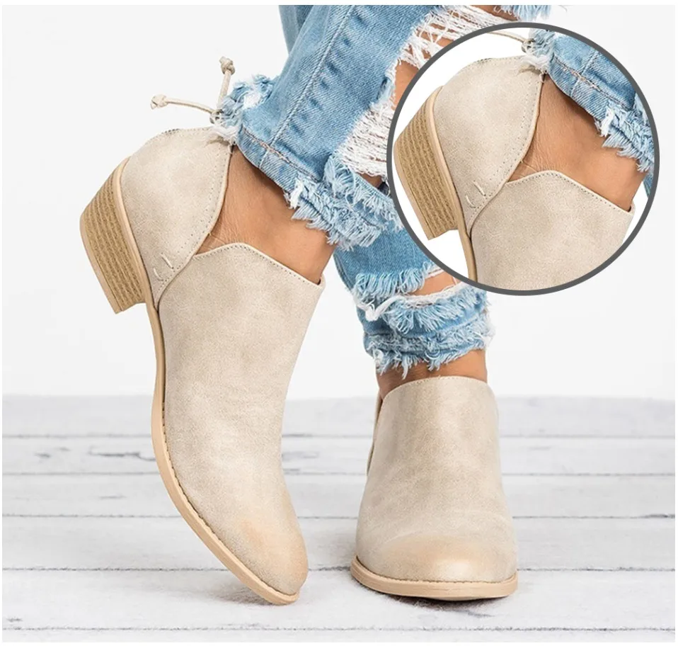 Женские зимние ботинки; Зимние Теплые ботильоны на квадратном каблуке с плюшевой стелькой; Повседневная зимняя женская обувь из флока на шнуровке; Большие размеры 44