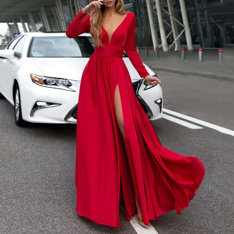 * Описание товара: для женщинЖенское сексуальное длинное платье с v-образным вырезом и длинным рукавом
