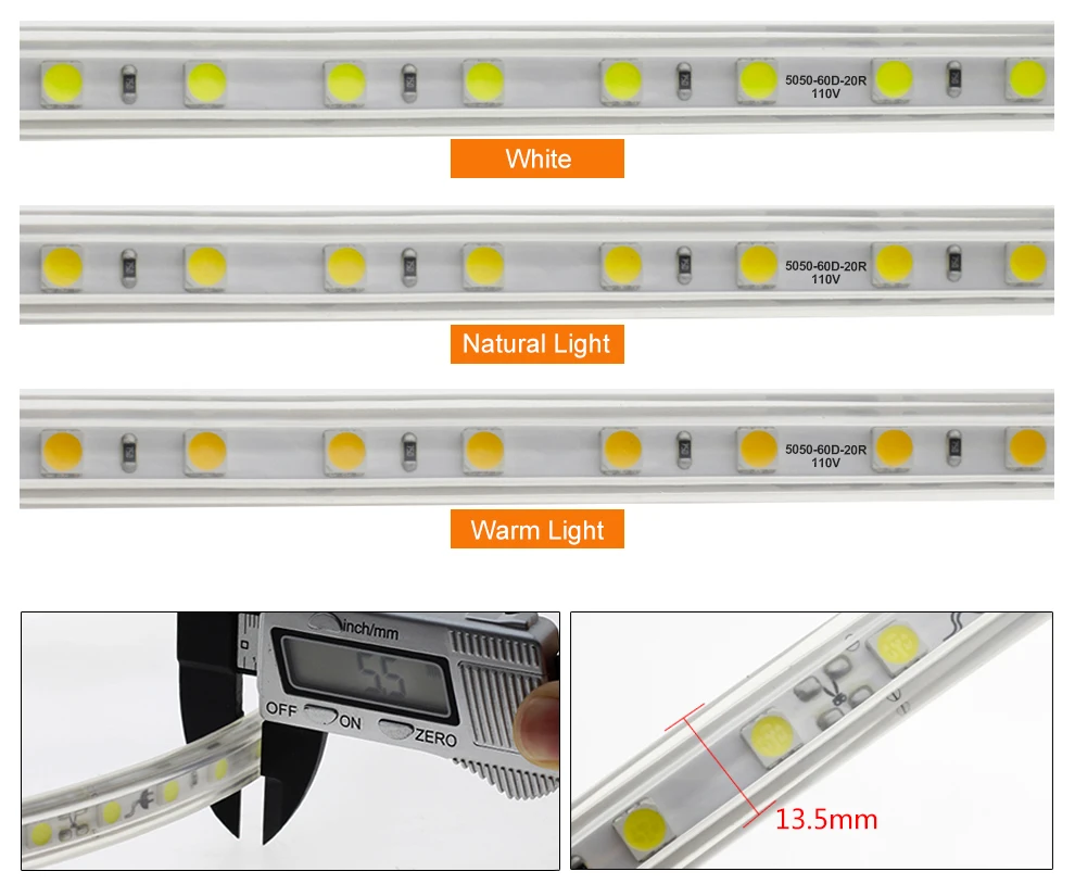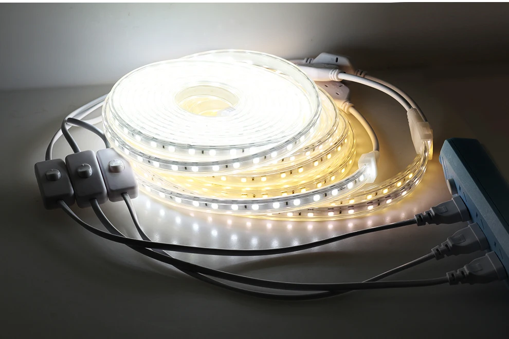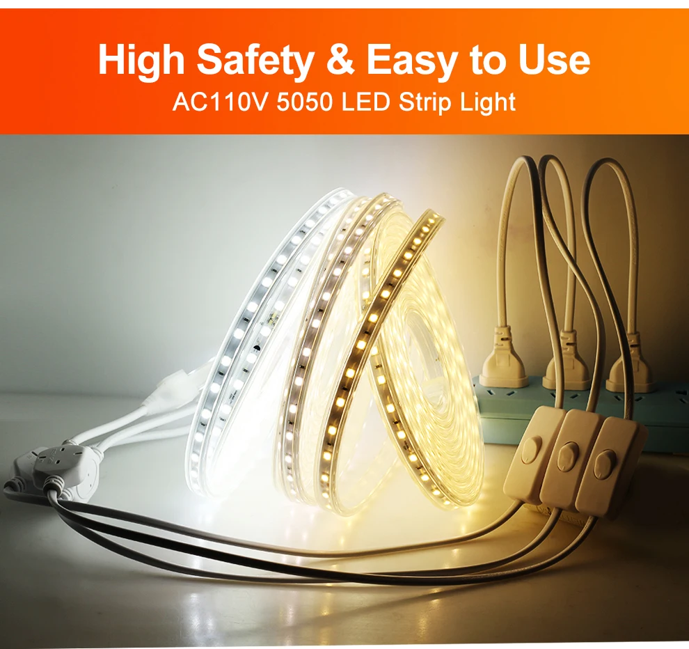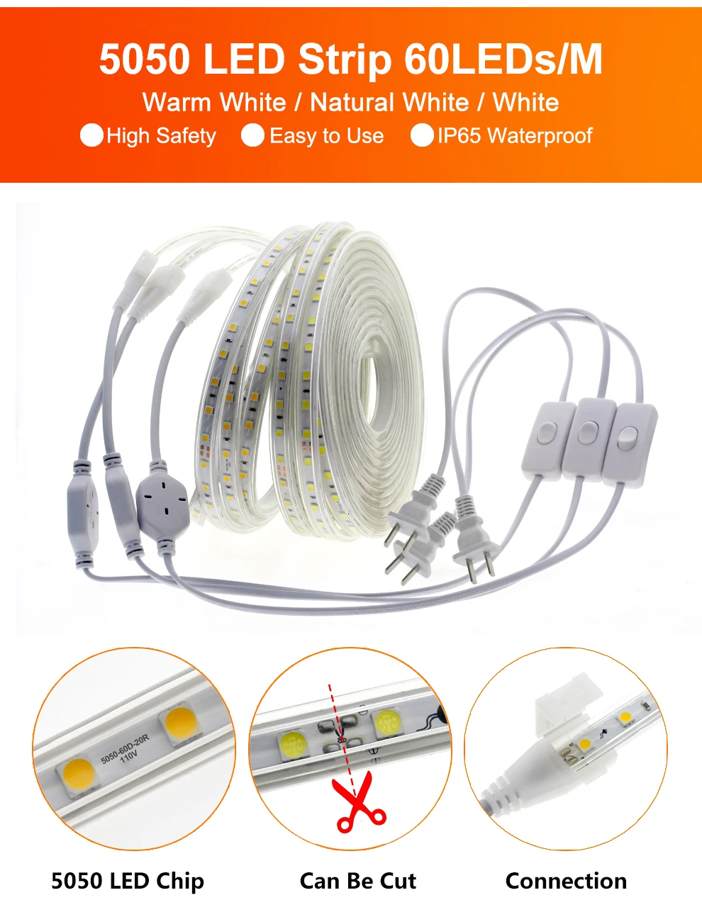 Светодиодная лента 5050 AC110V Высокая Яркость Водонепроницаемая гибкая светодиодная лента 1 м провод с вилкой США безопасная наружная Диодная световая лента