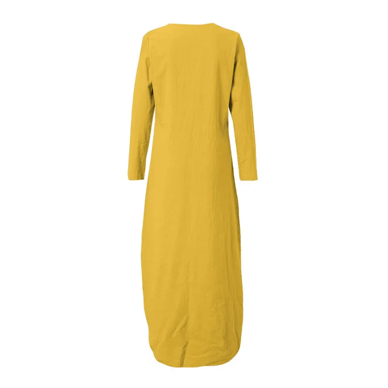 Весеннее женское платье, Женское Платье макси с длинным рукавом и u-образным вырезом, повседневное длинное платье-кафтан с разрезом