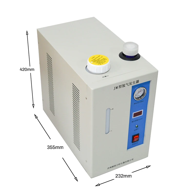 Номер модели: JM300 / JM500 Скорость выходного потока: 0-300 мл/мин./0-500 мл/мин. Выход давление: 0-0,4 МПа (может быть отрегулировано в соответствии с требованиями пользователя) Предохранение от перенапряжения: 0,46 МПа Чистота водорода:> 99.999% Напряжение источника питания: 220 В переменного тока 50 Гц Выходная мощность: 150 Вт/260 Вт Температура окружающей среды: 10-40 ℃ (Относительная влажность <85%)