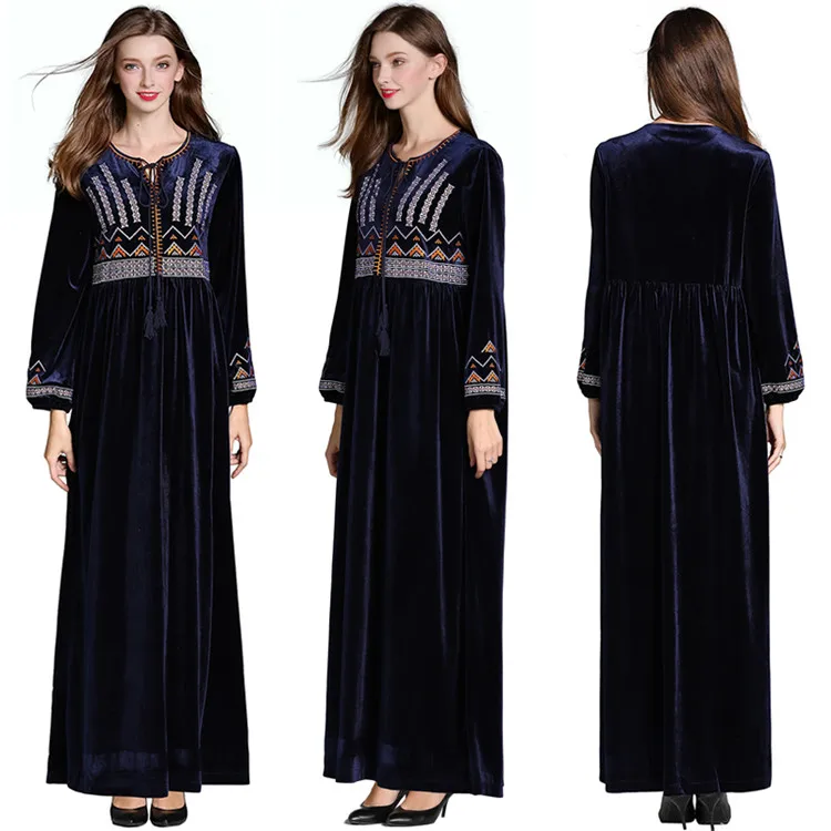 Женское мусульманское арабское мусульманское платье на Ближнем Востоке с этническим принтом и длинным рукавом