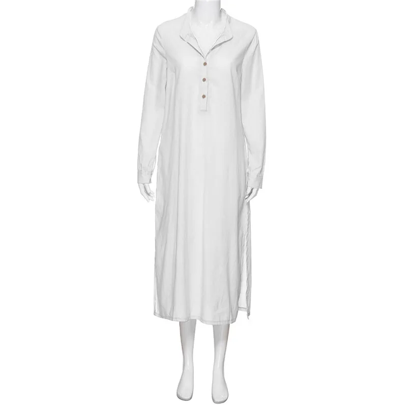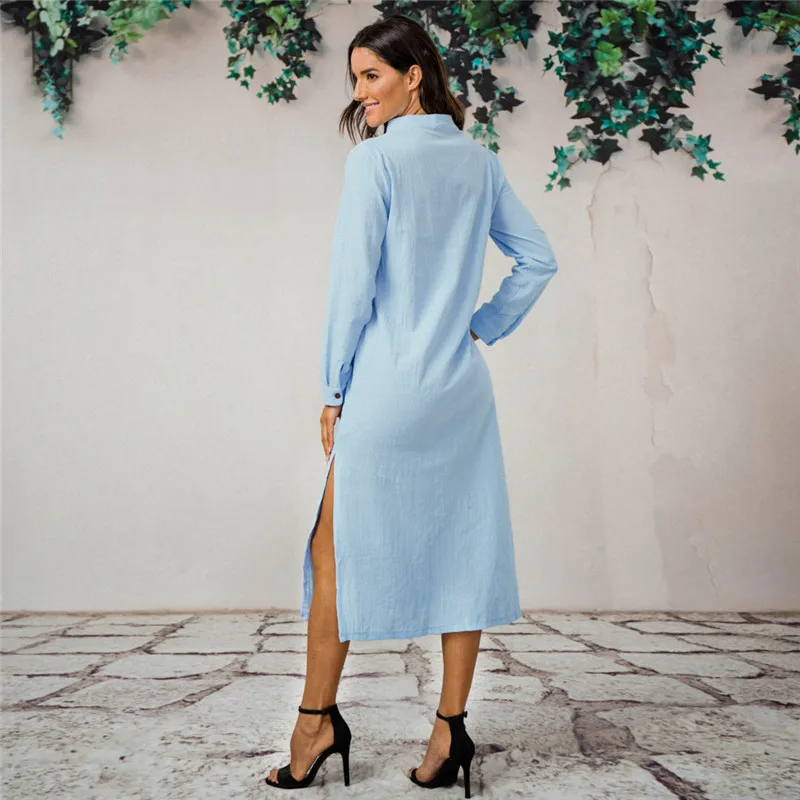 Женское Хлопковое платье-кафтан с длинным рукавом, повседневное длинное платье-рубашка с воротником-стойкой, прямое платье большого размера на весну