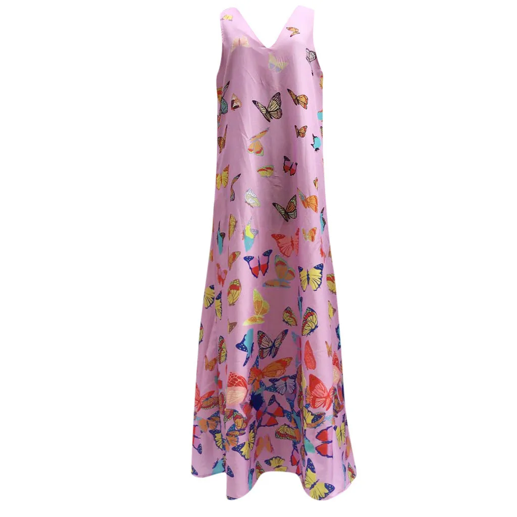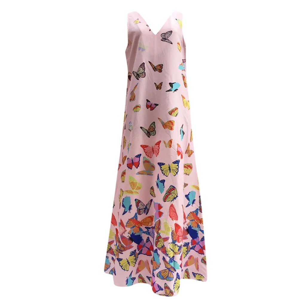 Женское Повседневное платье с принтом без рукавов; Свободные вечерние длинные платья
