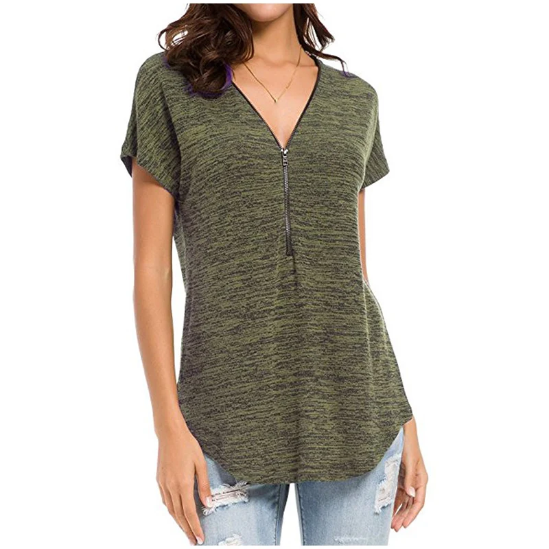Необычная Женская хлопковая рубашка с v-образным вырезом, топ с коротким рукавом, черно-белая женская блузка на молнии, топы
