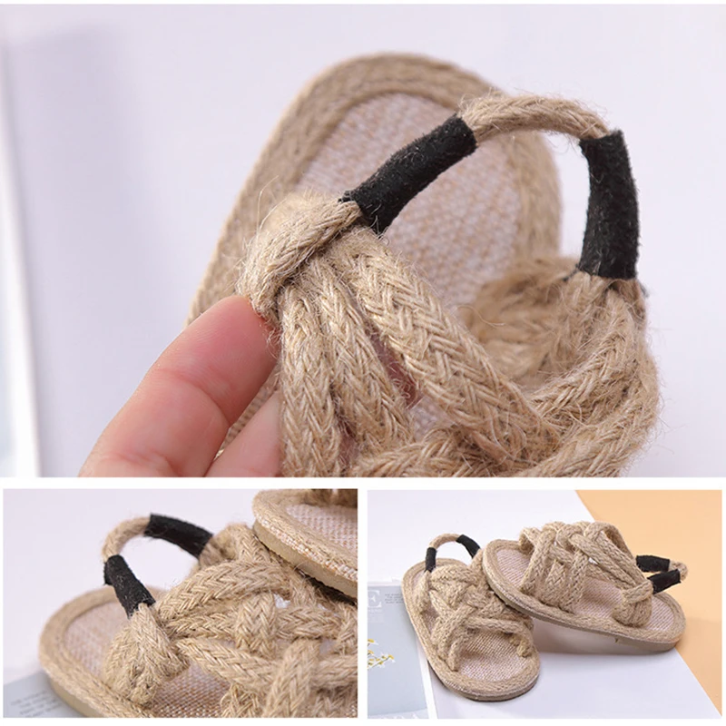 Детские Тканые Сандалии с пеньковой веревкой Материал стельки-микрофибра, подошва из резины, очень мягкая. Размеры от 21 до 30. Доступны два цвета: черный и Конопляный.