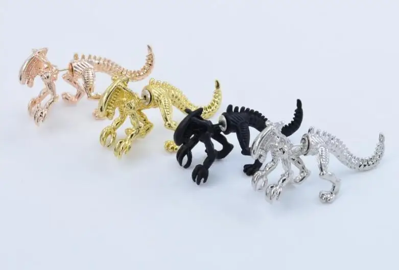 Панк инопланетянин динозавр в форме животных серьги гвоздики для женщин золотой черный металлический прокол серьги гвоздики 3D серьги в виде животных Ювелирные изделия