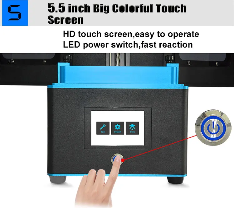 1. Настольный LCD 3D принтер 2. ОФЛАЙН печать с USB подключением 3. Чувствительный сенсорный экран, простой в эксплуатации 4. Печать тихо, работает тихо, не влияет на работу и сон 5. Фильтрация воздуха, формование активированным углем, делает воздух чистым