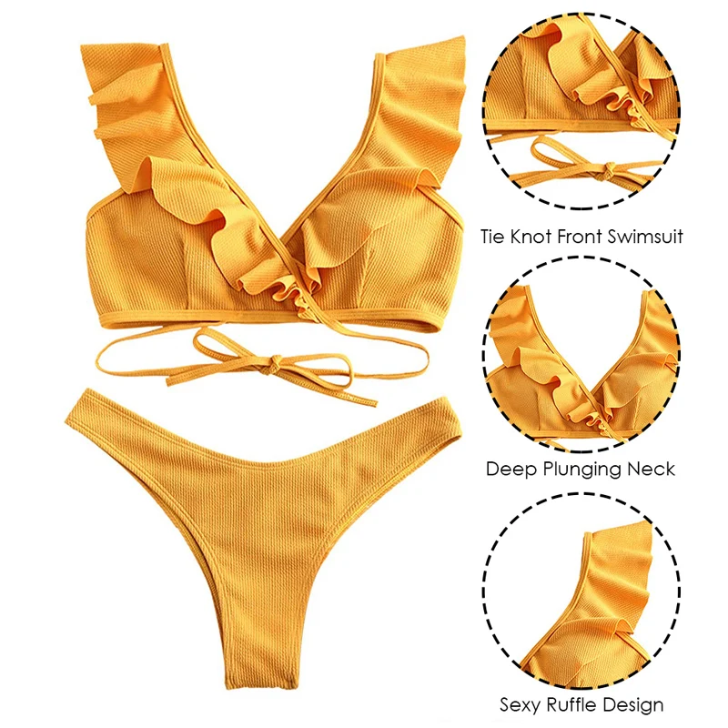 Женский купальник с оборками, пляжный комплект бикини с высокой талией, пляжная одежда, 2019