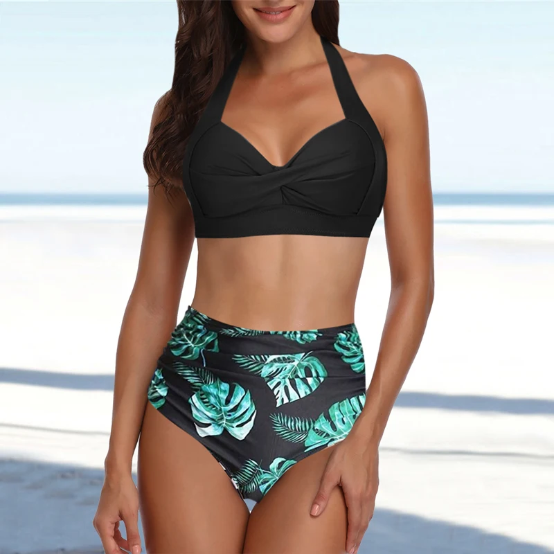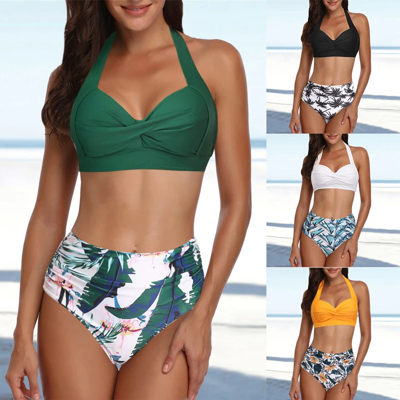 Характеристики: комплект бикини с лямкой на шее, пикантный пляжный купальник с высокой талией