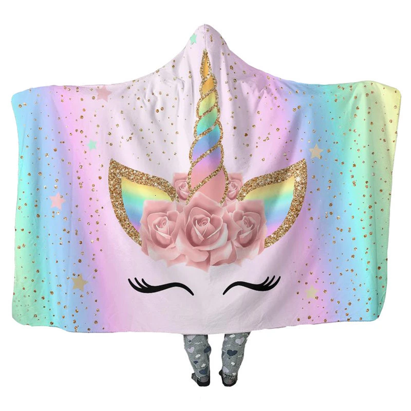 Новое одеяло с капюшоном серии «Единорог», удобное вельветовое одеяло на диван-кровать для дома, мягкое теплое детское одеяло с капюшоном для взрослых