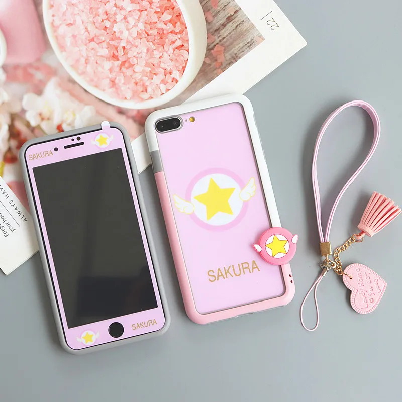 Для iPhone XS Max Sailor moon Sakura пленка для экрана из закаленного стекла (F & B) мягкий бампер для iPhone XR X 8 plus 8 7 P 6 S 6SP + ремешок