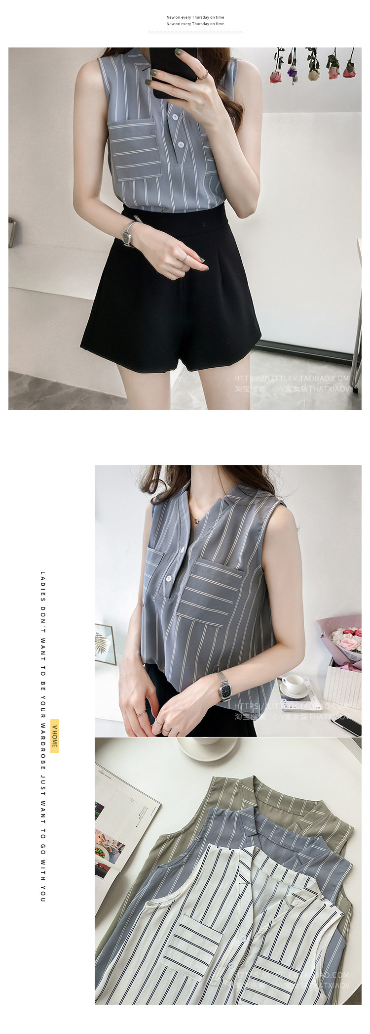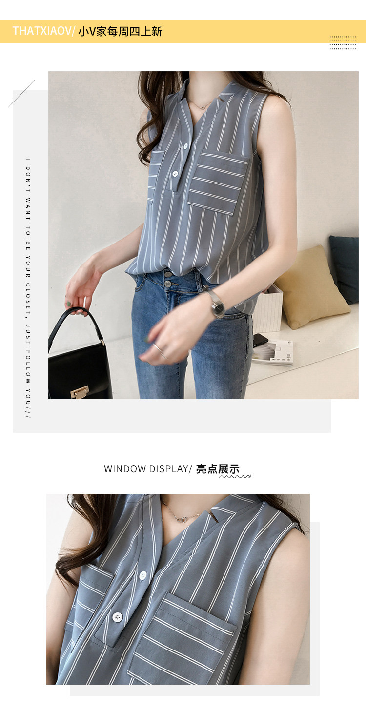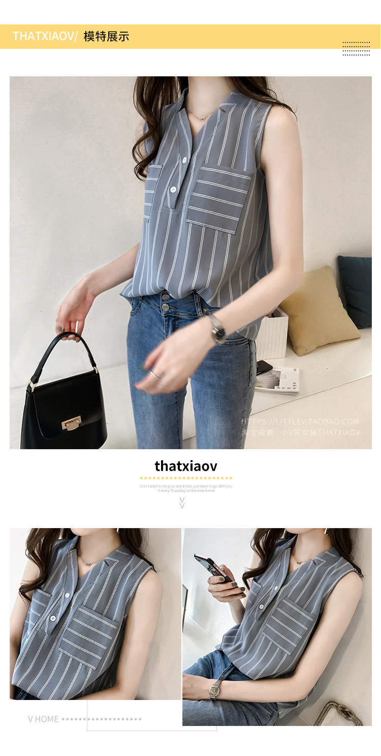 Женская шифоновая блузка без рукавов летний топ свободного покроя в полоску 3705 50