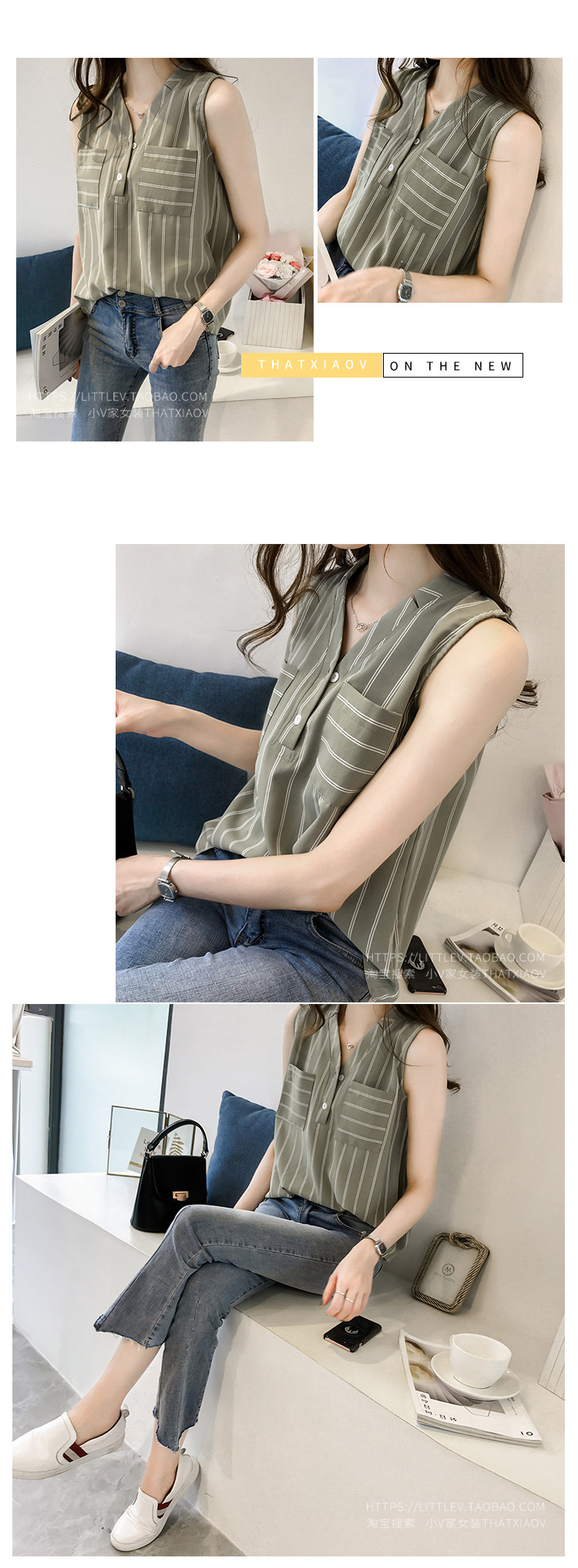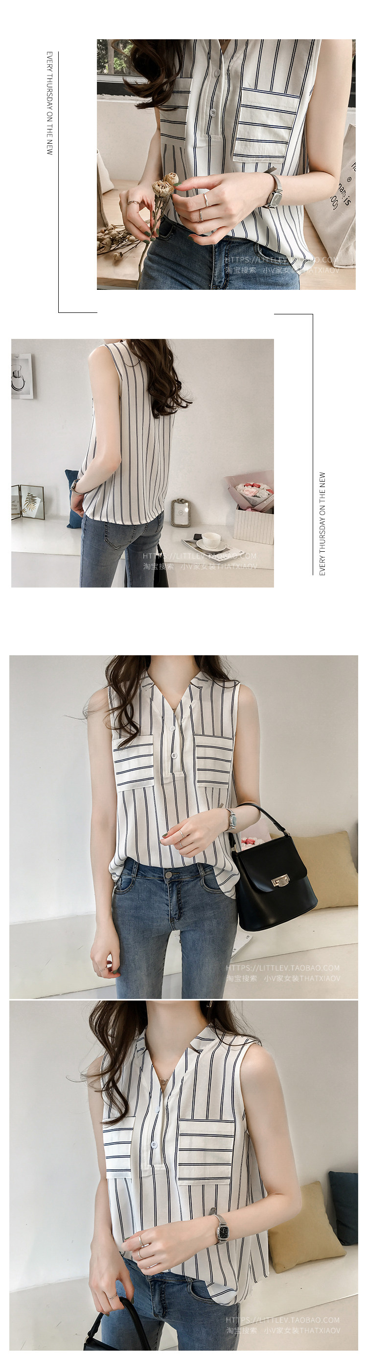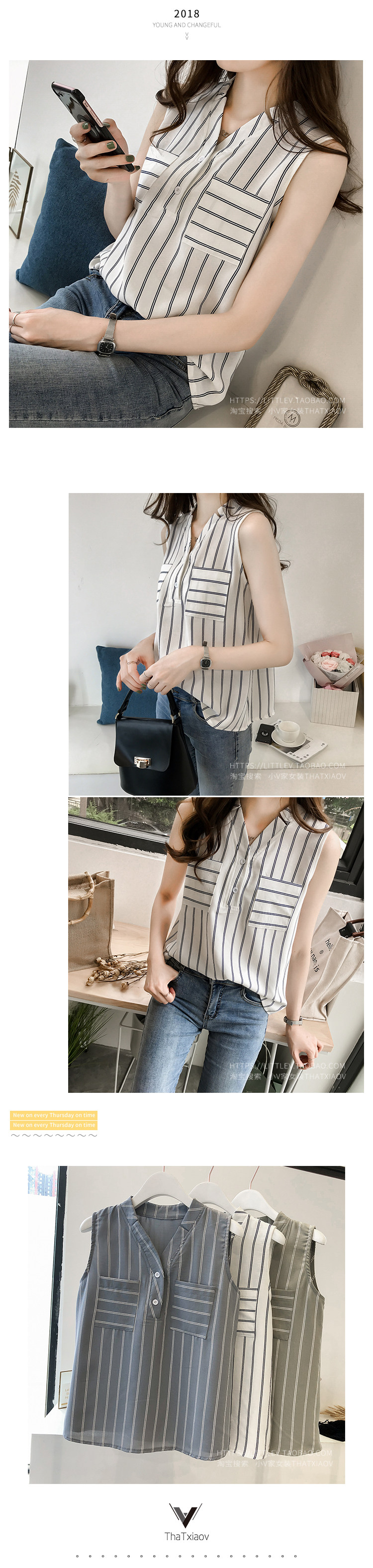 Женская шифоновая блузка без рукавов летний топ свободного покроя в полоску 3705 50
