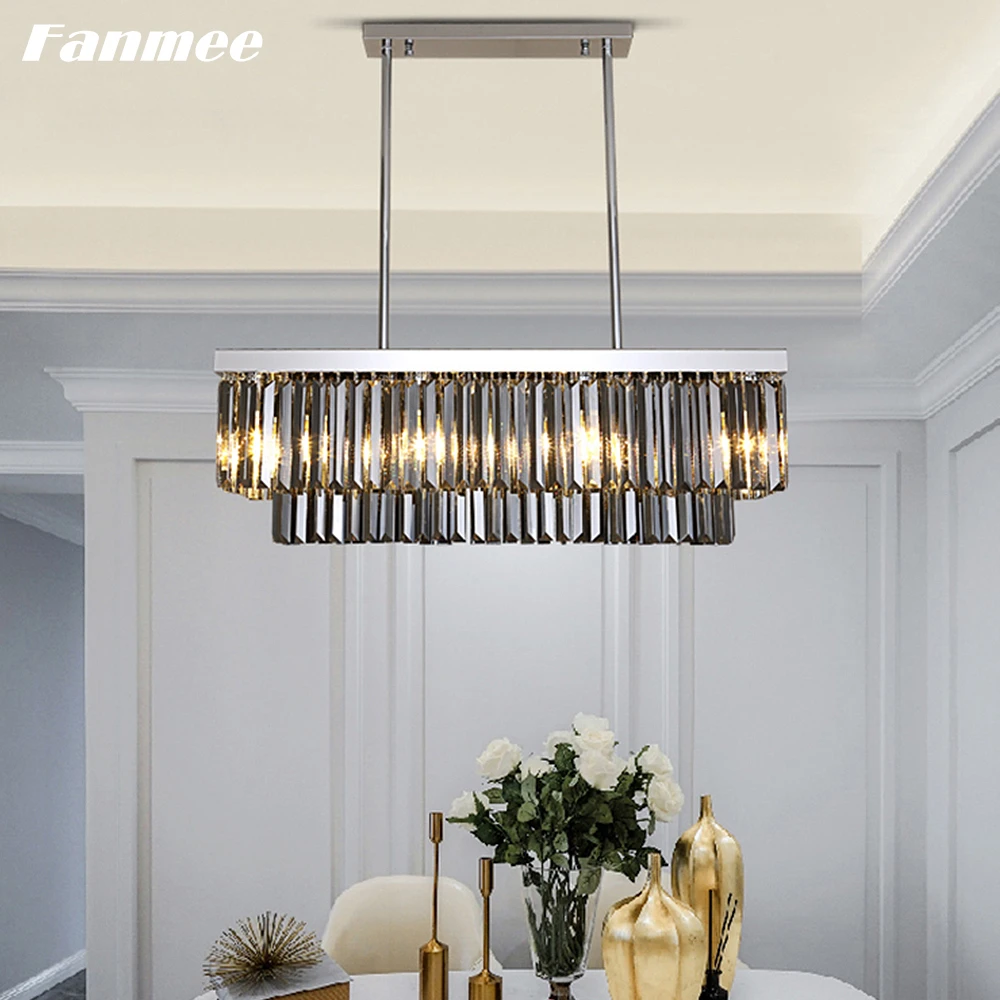 Современная Дымчатая хрустальная люстра светильник светодиодный прямоугольный хромированный каркас обеденный стол Подвесная лампа арт-деко гостиная кухня Остров