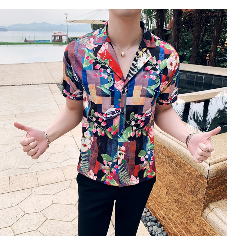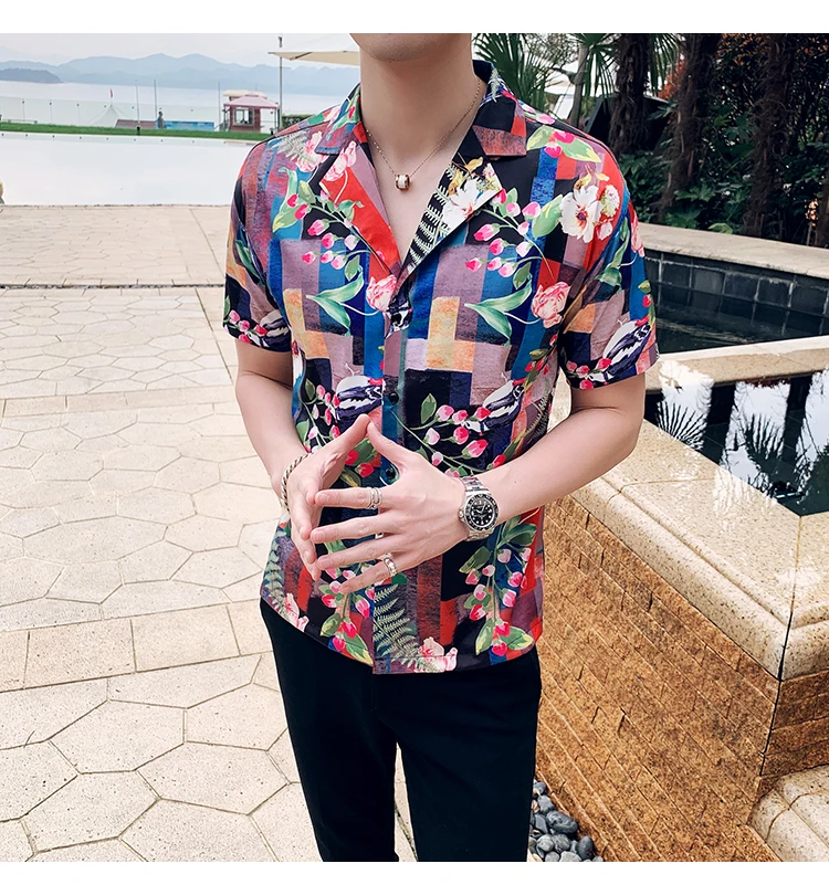 Мужская приталенная рубашка с воротником-стойкой и длинными рукавами | одежда