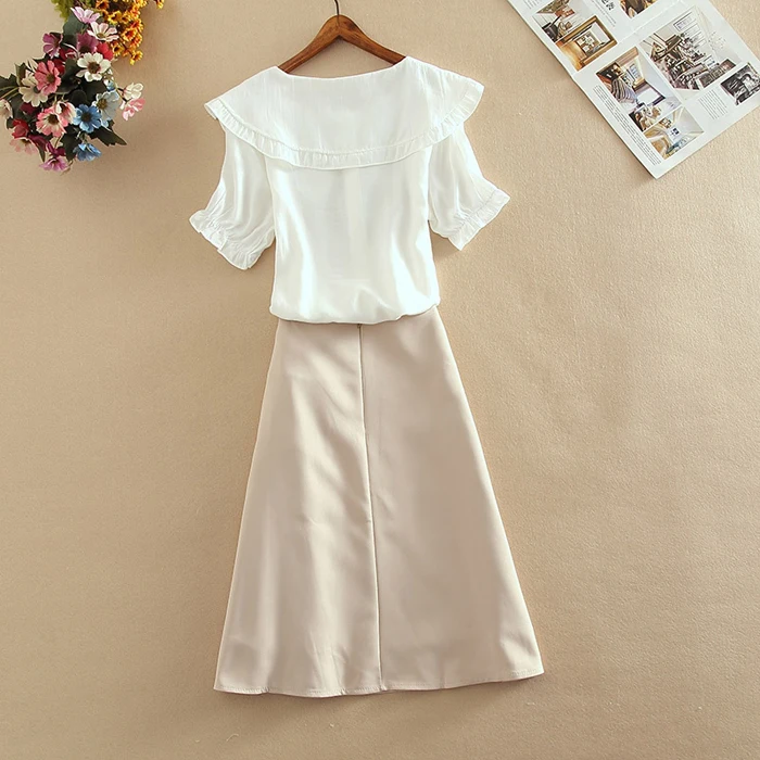 Женский Синий Зеленый льняная рубашка с оборками + галстук-бабочка, хлопковые юбки, костюмы, новые летние однотонные Топы с бантом, винтажные комплекты с юбкой с запахом
