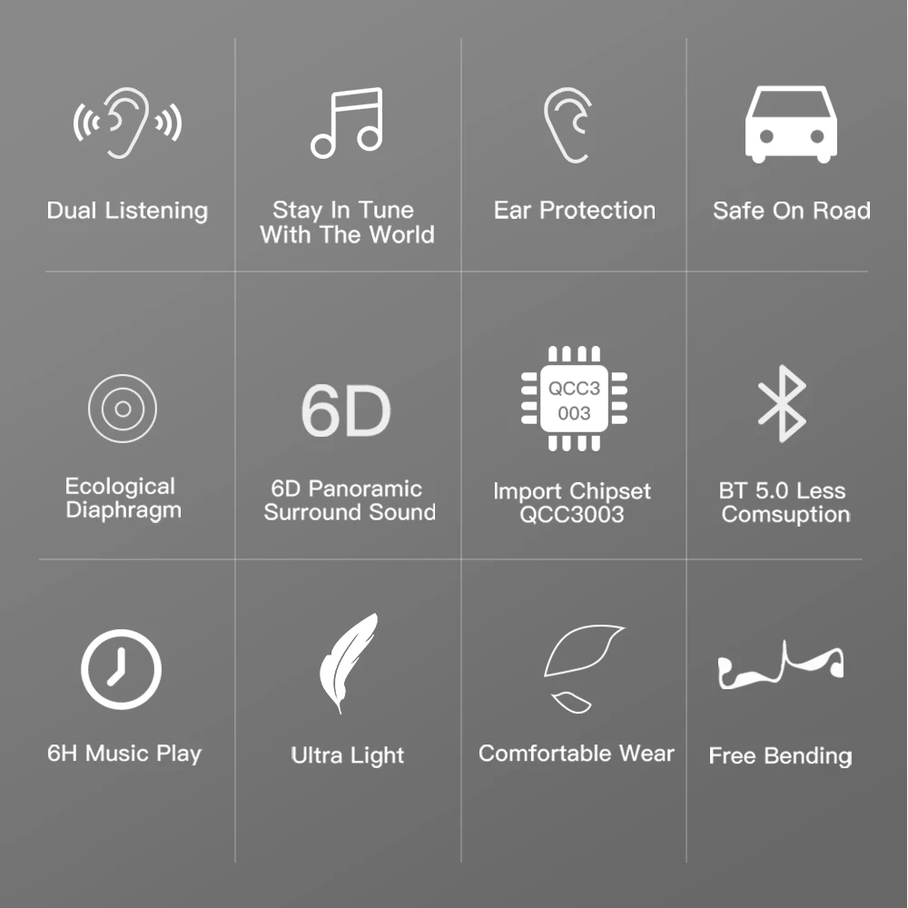 - [Автоматическая система поиска музыки]Это не простая костная проводимость, она использует автоматическую систему поиска музыки. Не нужно вставлять в уши, чтобы слушать музыку и телефонные звонки, держать в курсе окружающей среды 6D и улучшать безопасность занятий спортом на открытом воздухе.
