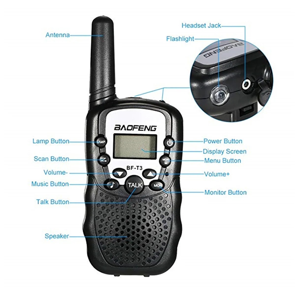 Эта маленькая и портативная рация BAOFENG T3 оснащена 22 каналами FRS и GMRS и 10 тонами вызовов. Долговечная простота использования и свободные руки, просто нажмите PTT, чтобы поговорить. Используйте встроенный микрофон и оставайтесь на связи с семьей и друзьями, особенно на открытом воздухе. Описание: Широкий диапазон до 3 км (6500 миль) (максимум 5 км открытое приложение) 38 защищенных кодов конфиденциальности на канал Отличное качество звука Найдите открытое щелевое крепление с автоматическим сканированием каналов Прохладный ЖК-дисплей дисплей с подсветкой Встроенный мини-светодиодный фонарик с синим светодиодный 22 канала 10 цвета кожи VOX звук Автоматическое сканирование каналов Батарея экономии Низкий уровень заряда батареи подсказки Напоминание о входящем вызове Позвоните, чтобы подтвердить тон кожи Регулируемый уровень громкости Блокировка клавиатуры Блокировка клавиатуры для предотвращения случайных изменений вашей персонализации Разъем для наушников: 2,5 мм Джек (без наушников) Мощность: 3 X AAA или 4 X AAA батареи на базовой станции (не включены в объем поставки) Размер изделия: (Д) см Д х Ш х В (L) 5,5 см х (толщина) см (14x5,6x3,6 см) Вес посылка: 221 г Цвет: черный/синий/желтый/розовый/ Упаковочный лист: 2 х BAOFENG T-3 рация Руководство пользователя (1 шт.) Аккумулятор в комплект не входит