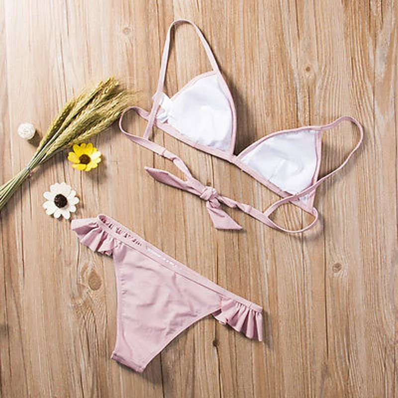 Комплект бикини винно-красного цвета, хит продаж 2019, сексуальный бразильский купальник с рюшами на шнуровке, пляжная одежда, женский купальный костюм, бикини