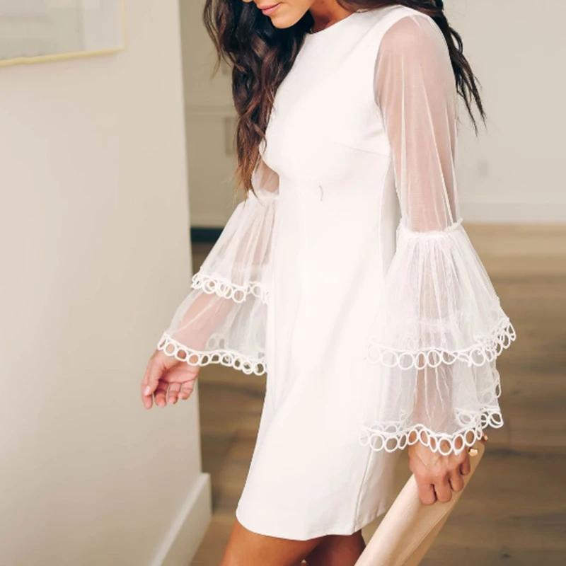 * Описание товара: модные женские кружевные сексуальный колокольчик рукава Повседневные Коктейльные Вечерние тонкие платья