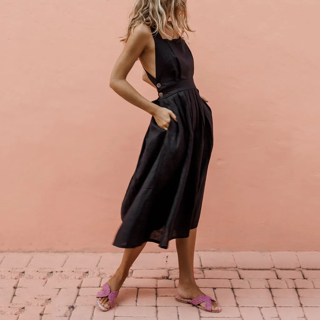 Женское повседневное плиссированное платье на пуговицах, с ремешком и пуговицами