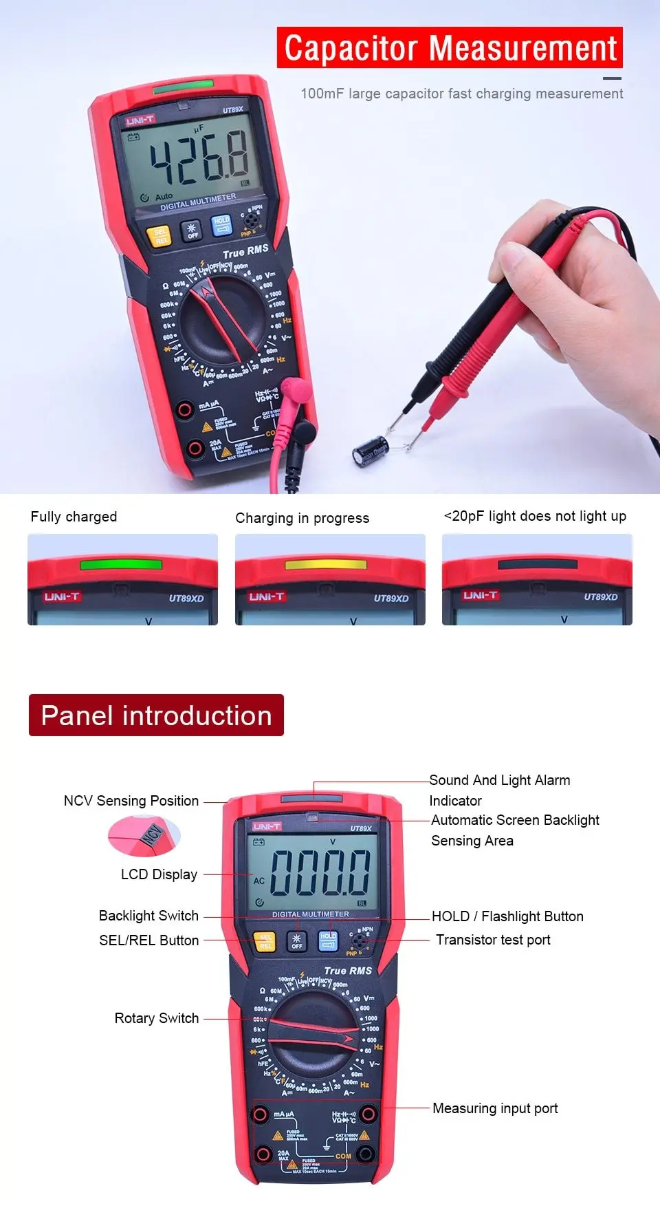 Цифровой мультиметр True RMS UNI-T UT89X; Измеритель напряжения переменного тока постоянного тока; Измеритель сопротивления емкости; NCV/Проверка провода
