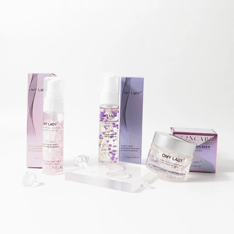OMY LADY, шелковая коллагеновая Сыворотка для лица + экстракт виноградных косточек, оригинальный витамин С, сыворотка + Икра, коллаген, ночной крем, набор для ухода за кожей