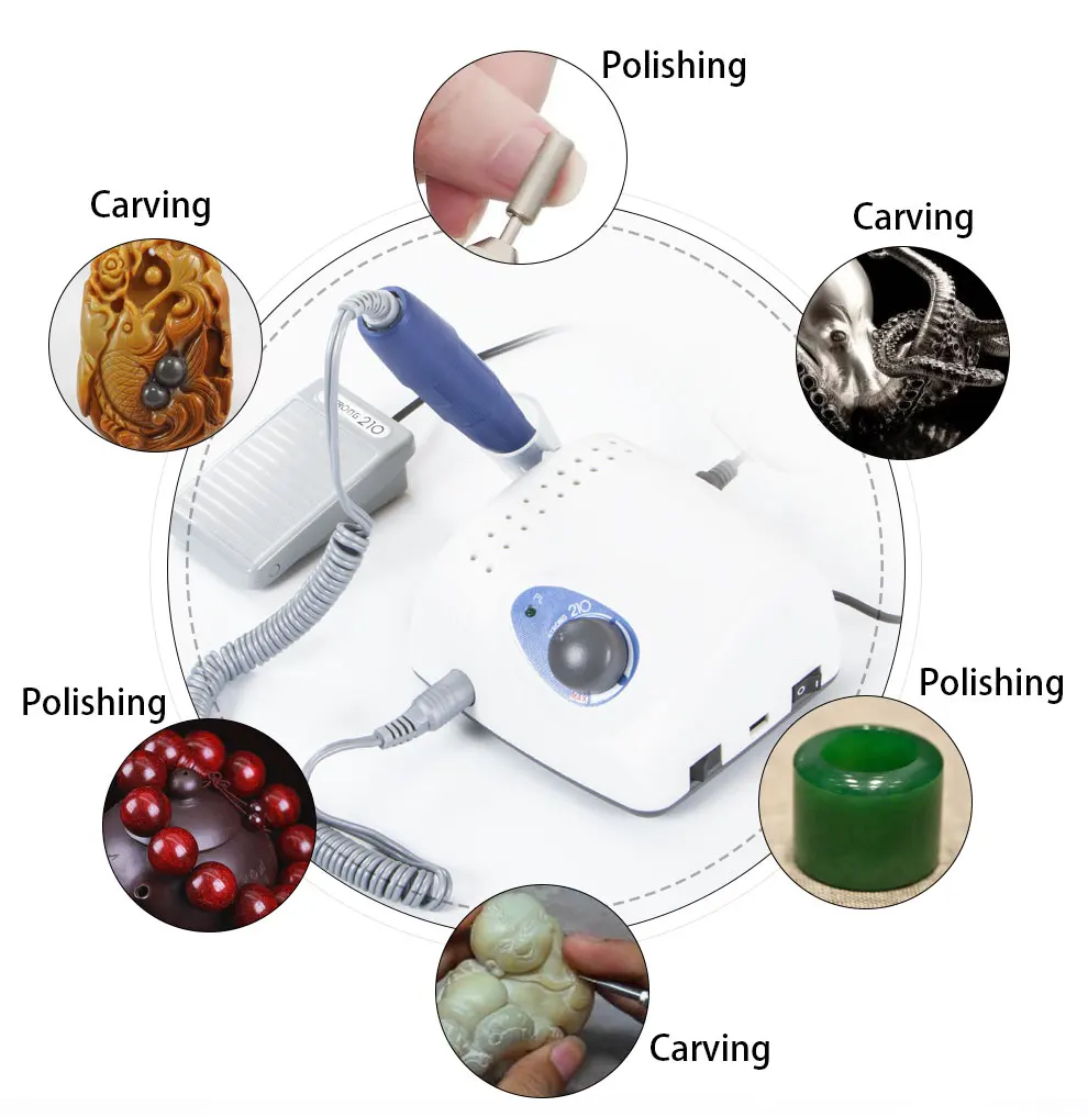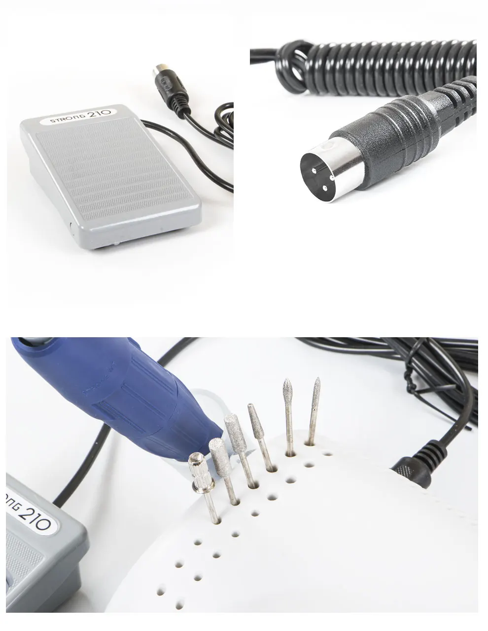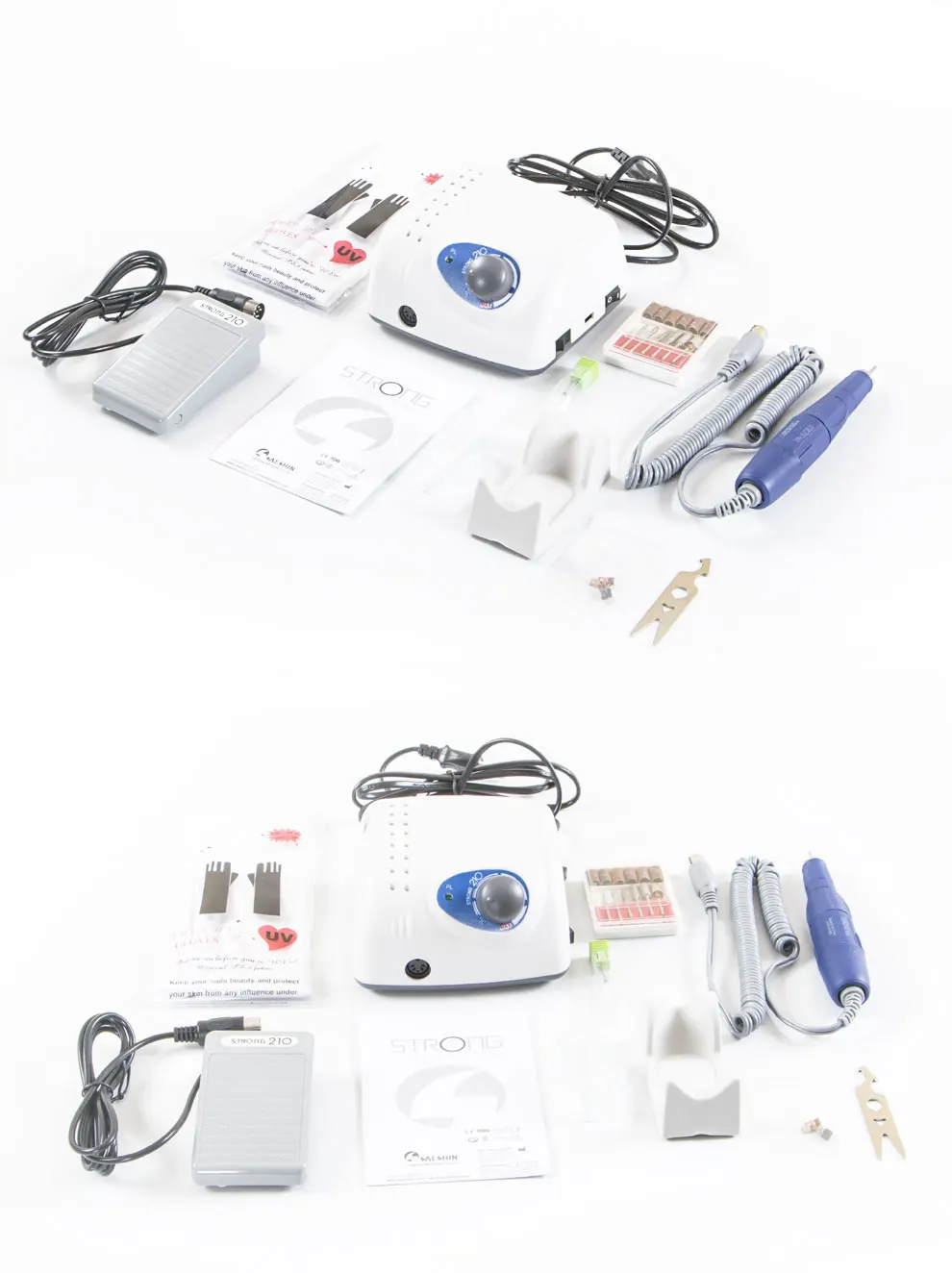 В комплект входит: -1 хост; (штепсельная Вилка европейского стандарта) -1 мобильный телефон -1 фут W ведьма -1x поддержка телефона -Сверло 6x -1 Руководство пользователя (на английском языке) -1 керамическая Шлифовальная головка -1x перчатки для ногтей Преимущество: Не жарко 2. Низкий уровень шума 3. Низкая вибрация 4. Более длительный срок службы