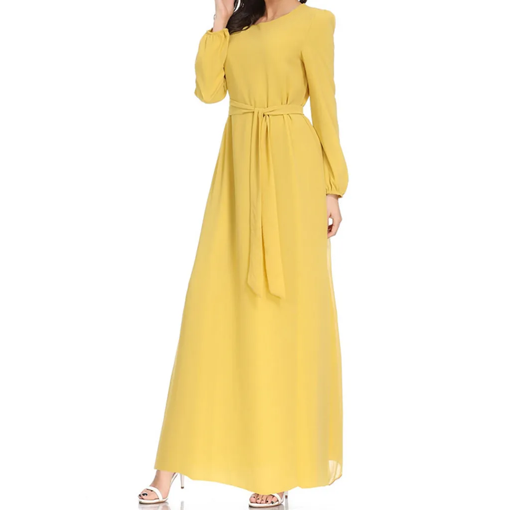Мусульманское длинное платье с рукавами-фонариками и поясом