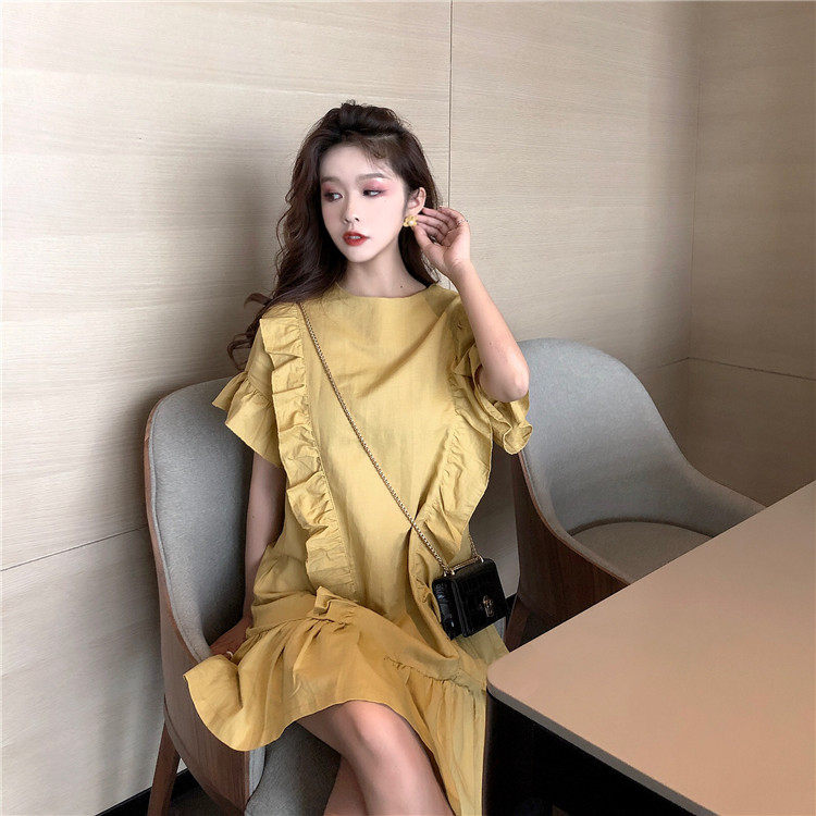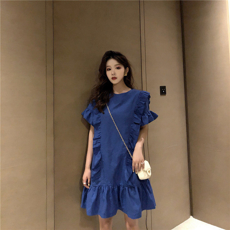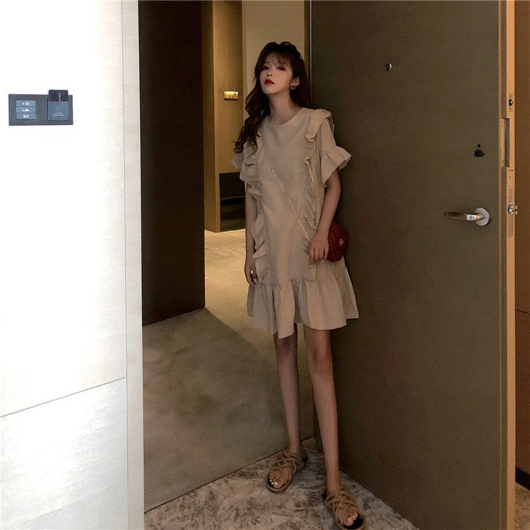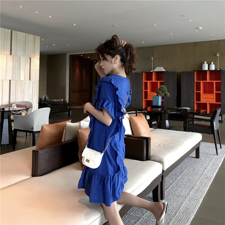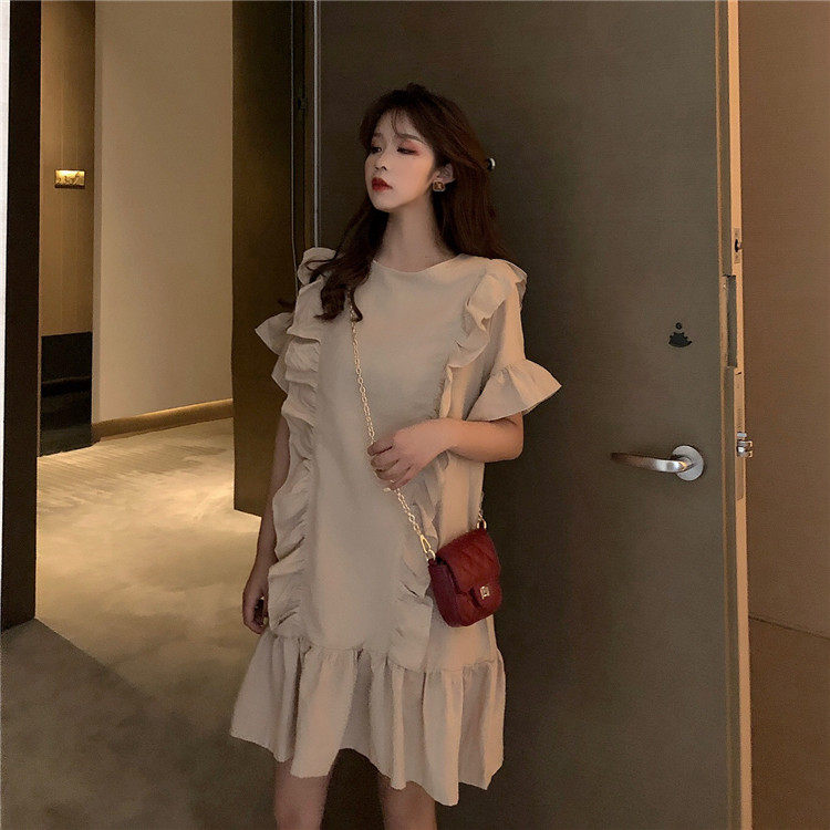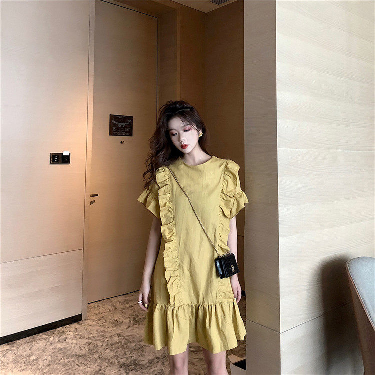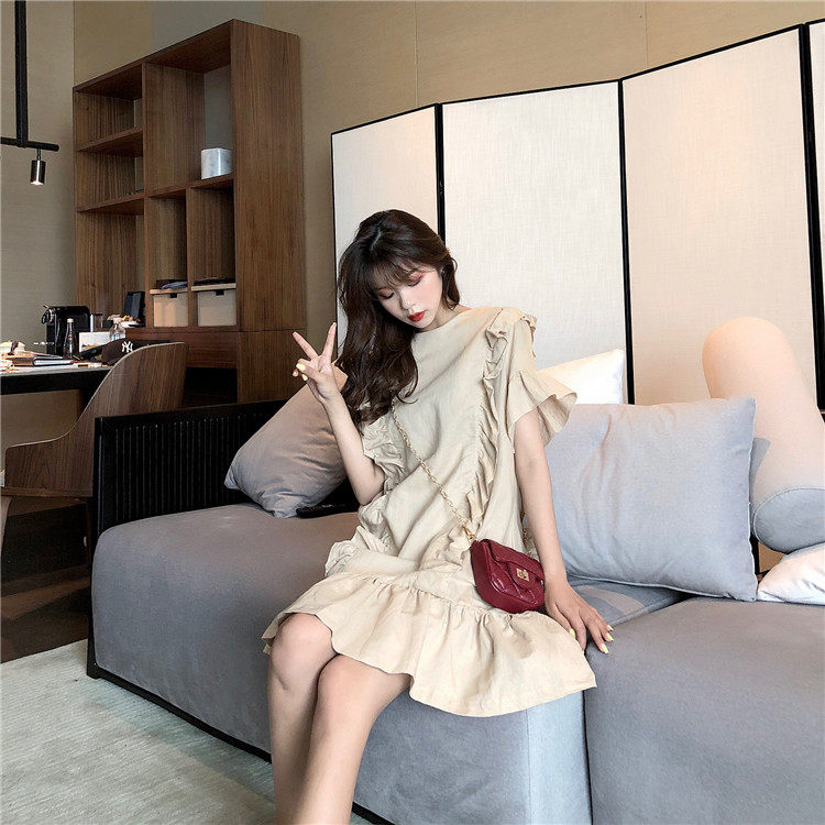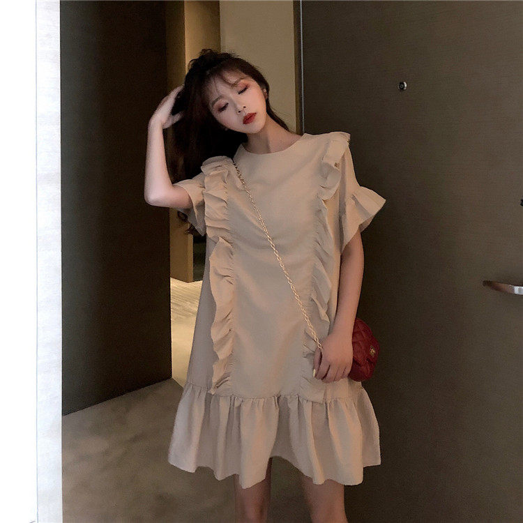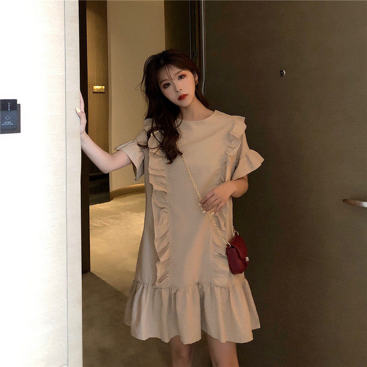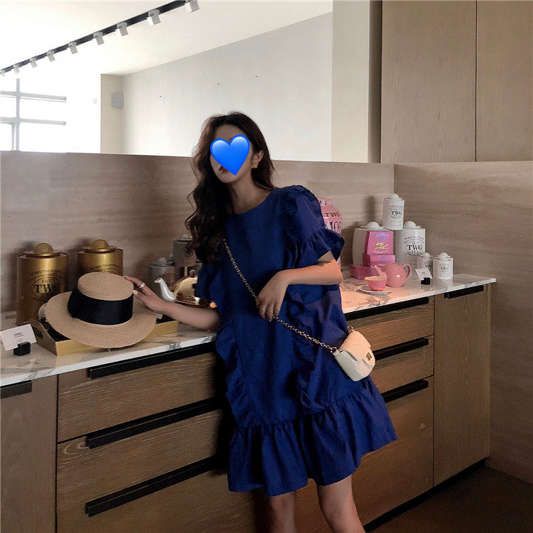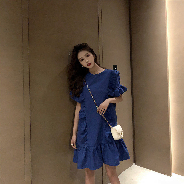 3 цвета летнее платье 2019 корейский ins стиль свободный сплошной цвет с коротким рукавом и оборками длиной до колена платье женское