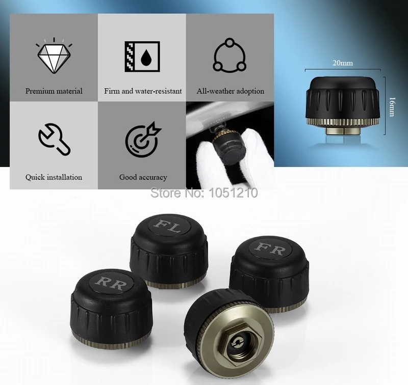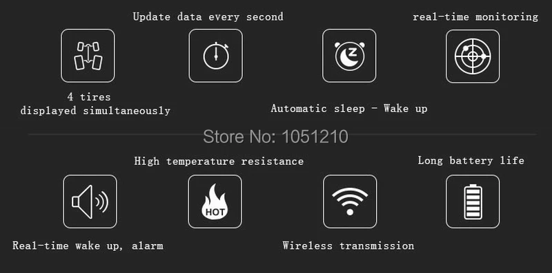 Отслеживает давление в шинах и Температурное состояние в режиме реального времени, который будет передавать данные в реальном времени аудиоплееруВашего автомобиля, чтобы напомнить водителю о комфорте транспортного средства и безопасности вождения.