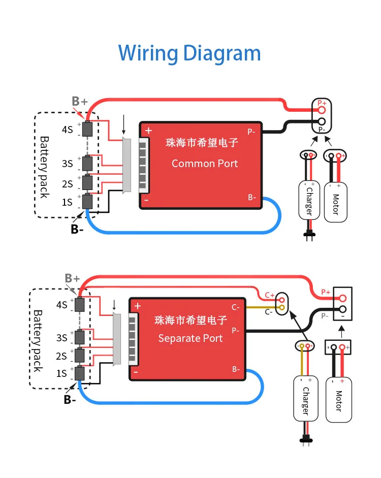 2. Схема подключения провода BMS с одним общим портом