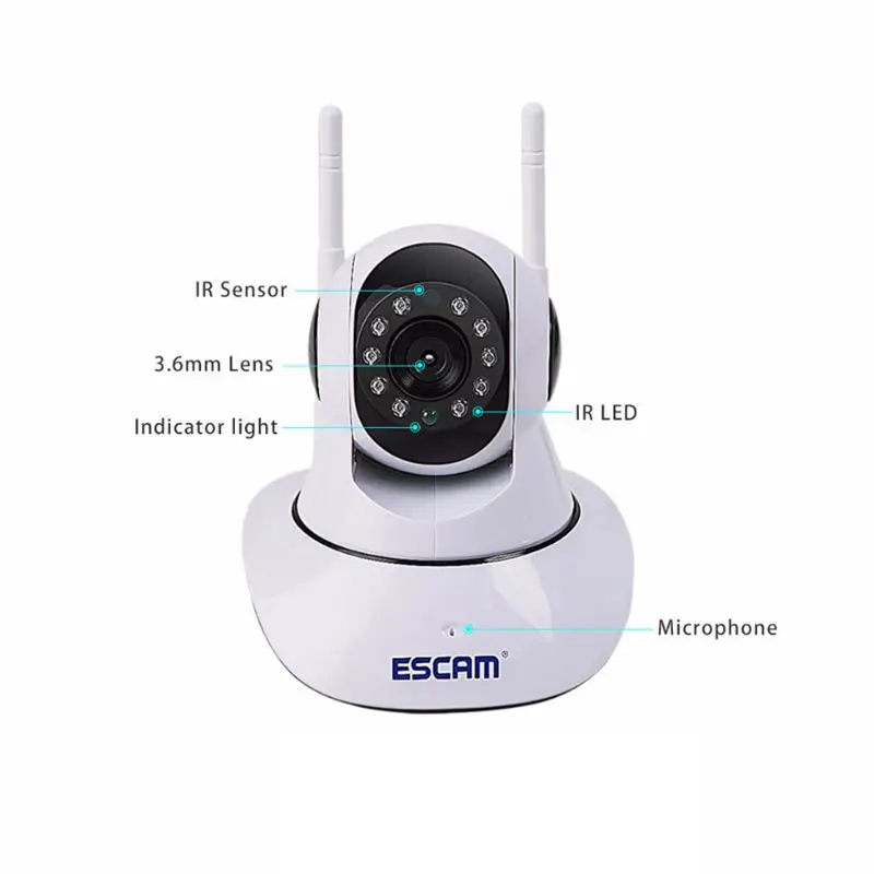 Ip-камера Escam G02 с двойной антенной, 720P, панорамирование/наклон, Wi-Fi, инфракрасная камера с поддержкой Onvif, макс. до 128 ГБ, видео монитор, Ip камера с вилкой Стандарта США